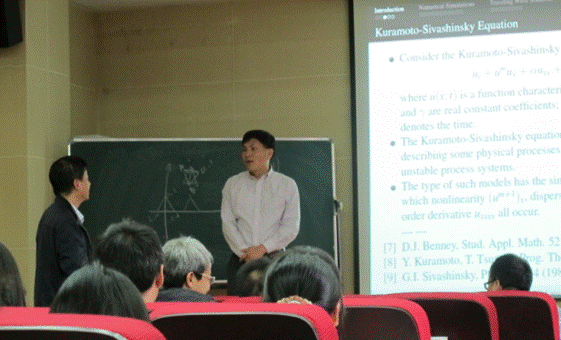 报告中,冯兆生教授就Kuramoto-Sivashinsky方程的应用背景,发展过程,国内外研究现状进行了深入剖析。特别地,在利用Lie对称证明行波解的存在性上进行了详细讲解。