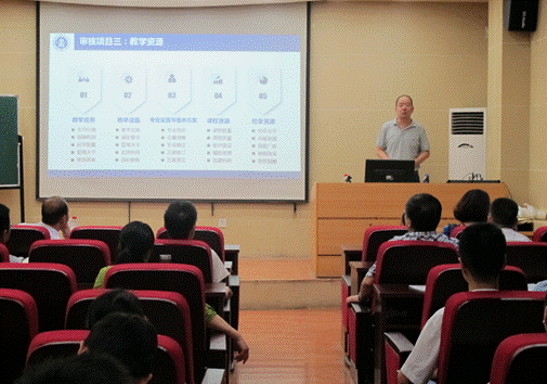 7月6日下午,应9728太阳集团邀请,学校副校长万明钢教授,教务处处长王治和教授在教学9号楼C101学术报告厅做了本科教学工作审核评估专题报告。会议由院长李永祥教授主持,学院全体教职工参加了报告会。此次专题报告会是学院落实迎评工作具体措施“五个一”工作的一部分。