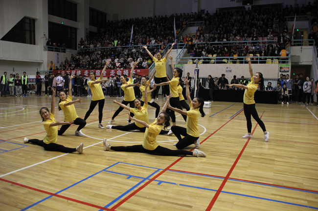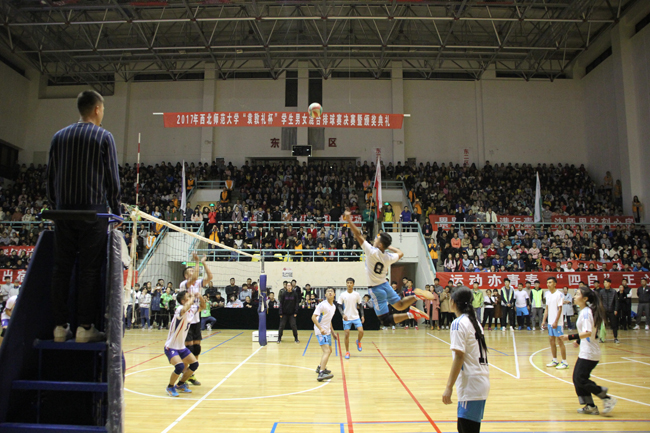 11月2日晚,由校体委、校学生会主办的2017年tyc太阳成集团9728“袁敦礼”杯学生男女混合排球赛决赛暨颁奖典礼在体育馆举行。校体委、校团委等有关单位负责人,学院领导、部分老师以及全校2000余名师生观看了比赛。
