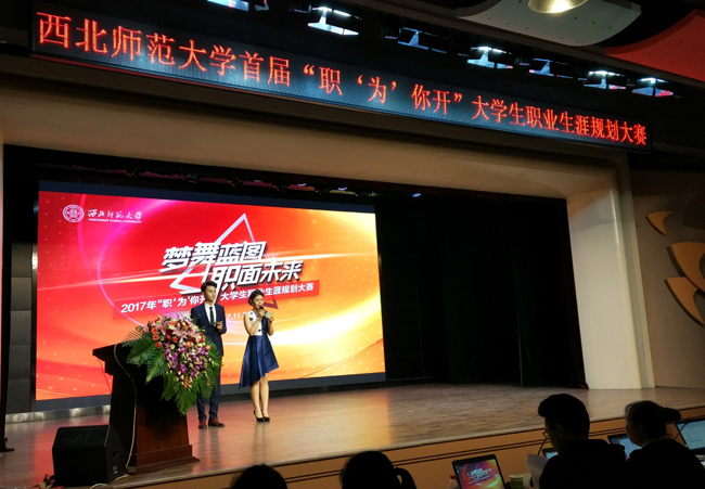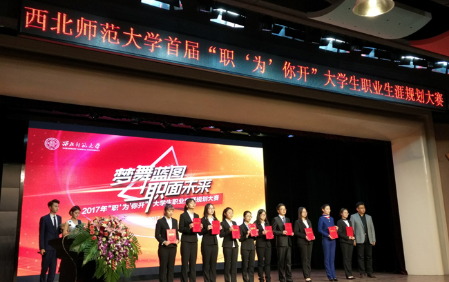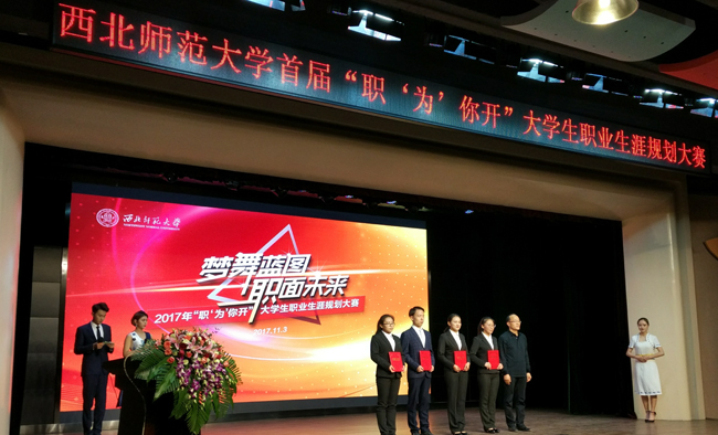 11月3日,西北师大首届“职‘为’你开”大学生职业生涯规划大赛决赛在学生发展中心举行,本次大赛邀请了兰州大学、tyc太阳成集团9728、兰州交通大学、兰州理工大学、甘肃农业大学等多所省内高校的相关老师作为评委,我校师生共300余人参加了此次活动。大赛是为了贯彻落实甘肃省教育厅“甘肃省高校大学生就业创业能力提升工程”项目,有效促进在校大学生就业创业能力而组织的高规格赛事活动。