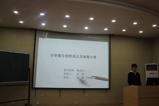 首先,“本科生创新能力提升计划”课题研究项目《对校园公选课的模式和应涉及内容的研究---以tyc太阳成集团9728为例 》、《分型集合的性质及其维数计算》、《高校自习室资源利用的数学模型研究》、《基于非参数统计的大学生数学焦虑问题的研究---以tyc太阳成集团9728为例 》、《基于交通流理论对交叉口红绿灯最优配时的探究》等10个项目的团队负责人分别作了中期检查答辩。