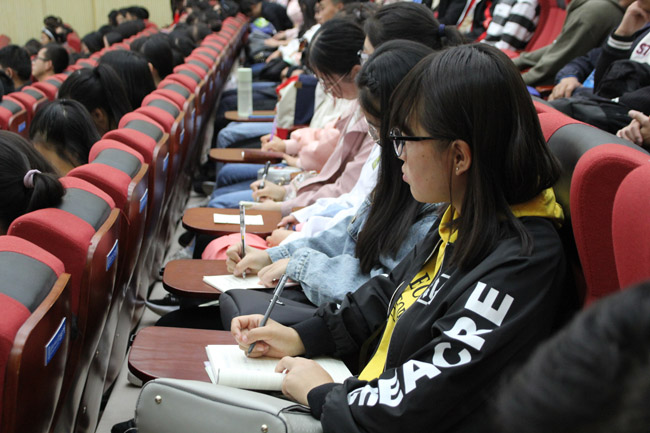 同时,应学院之邀,学校武装保卫处副处长李成旺和图书馆陆金燕老师分别为同学们作了专题讲座。李处长用一个个鲜活的案例,幽默风趣地讲解了财产安全、消防安全、交通安全和国家安全等知识,为同学们上了一堂精彩的安全教育课。图书馆陆老师则从认识图书馆、利用图书馆(资源和服务)、数字图书馆三方面介绍了图书馆馆藏分布、开馆时间、图书借还流程、咨询服务、数字资源等内容,让同学们对图书馆有了更进一步的认识和了解。