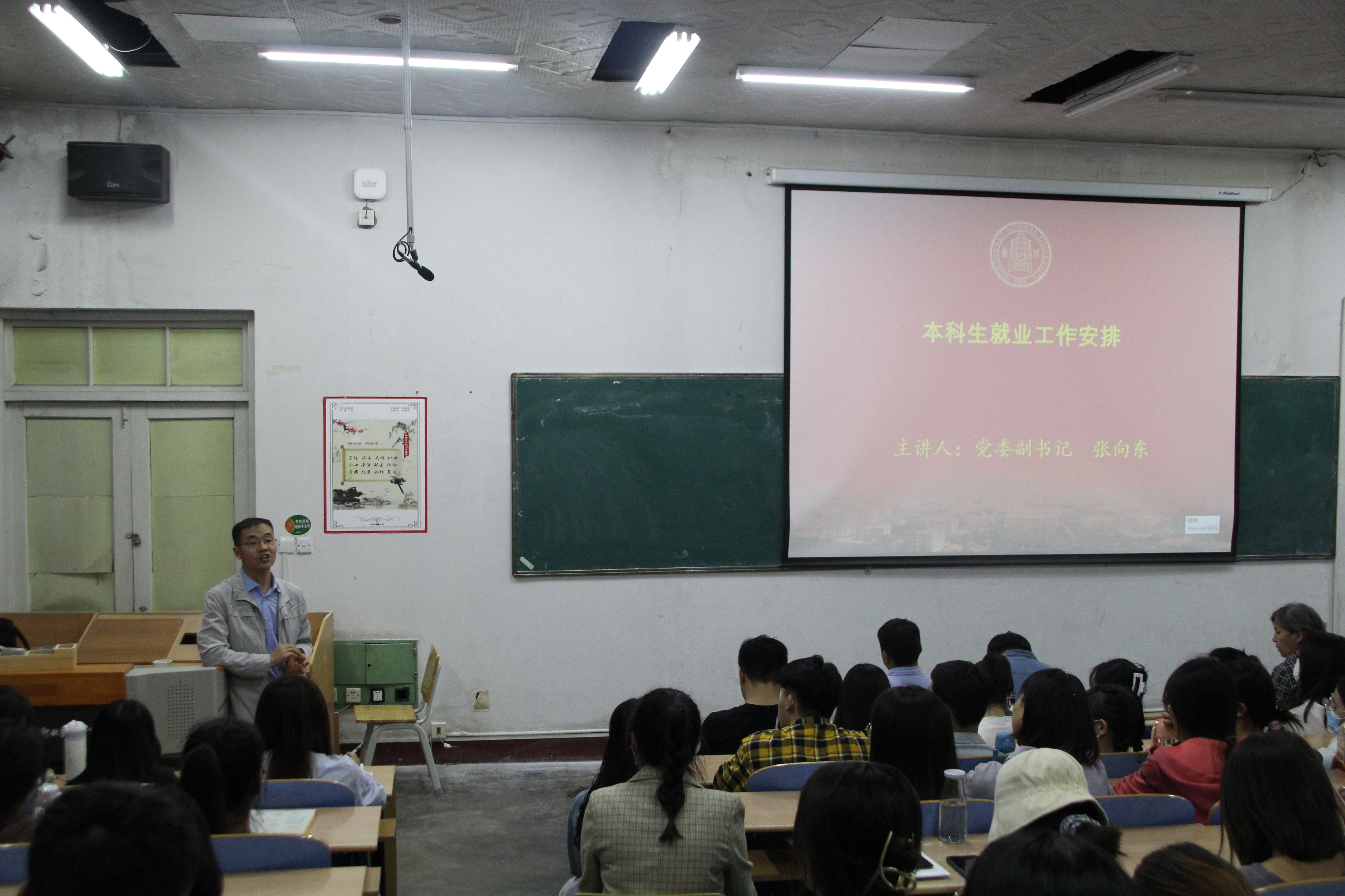 学院党委副书记张向东老师从孟晚舟女士回国引出,我们生逢伟大时代,要感恩伟大祖国,祖国需要我们去建设。他勉励同学们要志存高远,要在考研和就业中尽快做出选择,然后是明确相关政策,做好充足的考研或就业准备。