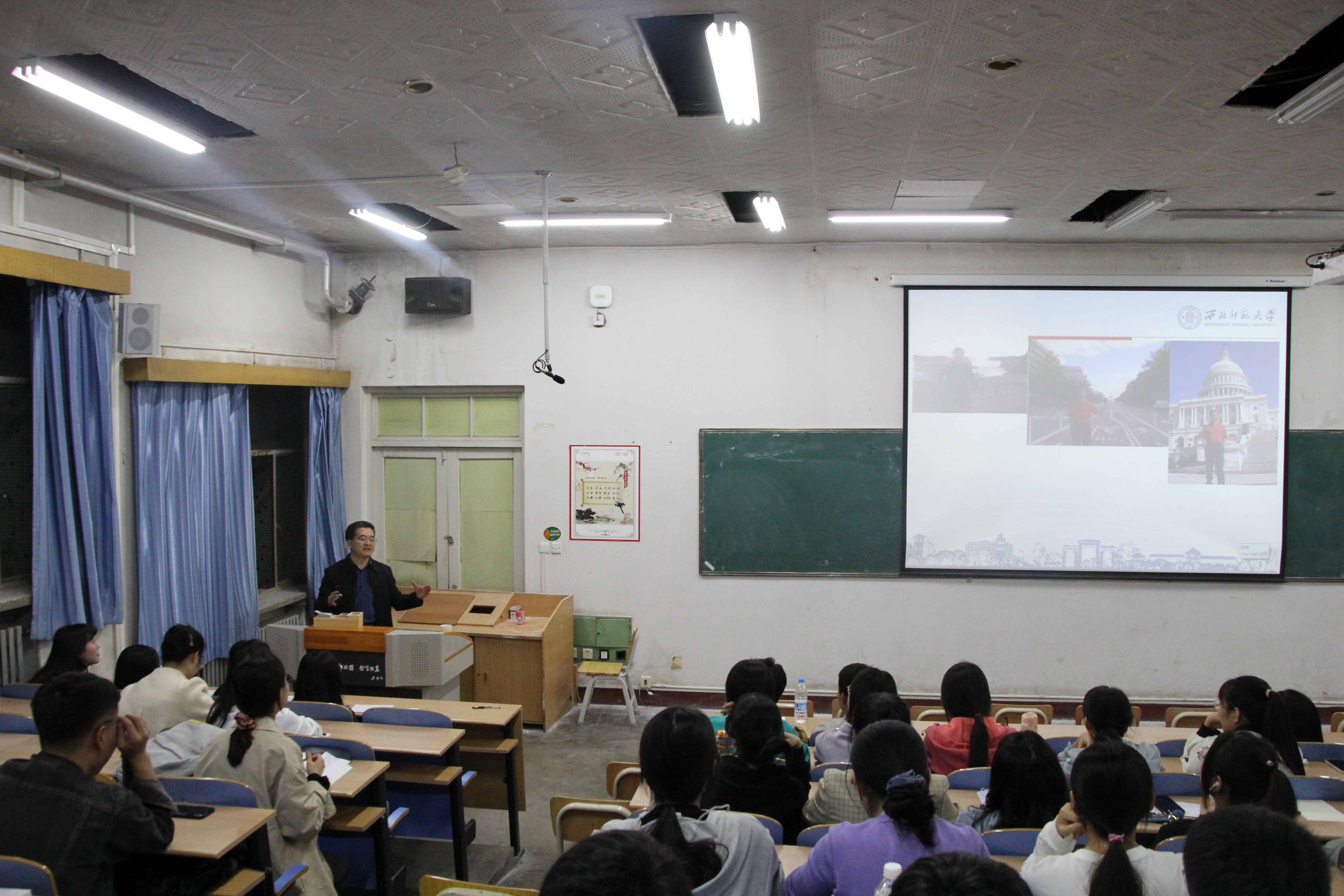 学院副院长乔虎生教授对有意考研的100余名学生作了专题指导报告。乔老师分别从近几年考研就业形势、学院师资力量、自己求学访学经历等方面做了分享,以此来勉励同学积极报考研究生。他从“选择”、“地域”、“平台”、“发展”四个方面做了总结,考研是社会大趋势、在校能考则考、少走弯路、减少二战。