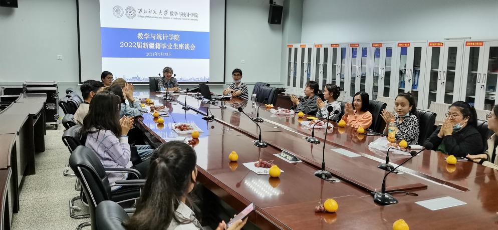 9月28日晚上,学院在9号教学楼A1611会议室召开2022届新疆籍毕业生报考研究生、促进就业座谈会。学院2022届全体新疆籍毕业生、2021级预科班部分学生代表和物理与电子工程学院內派教师郭岗岗参加了此次座谈会,本次会议由新疆内派教师哈丽达·阿不拉主持。