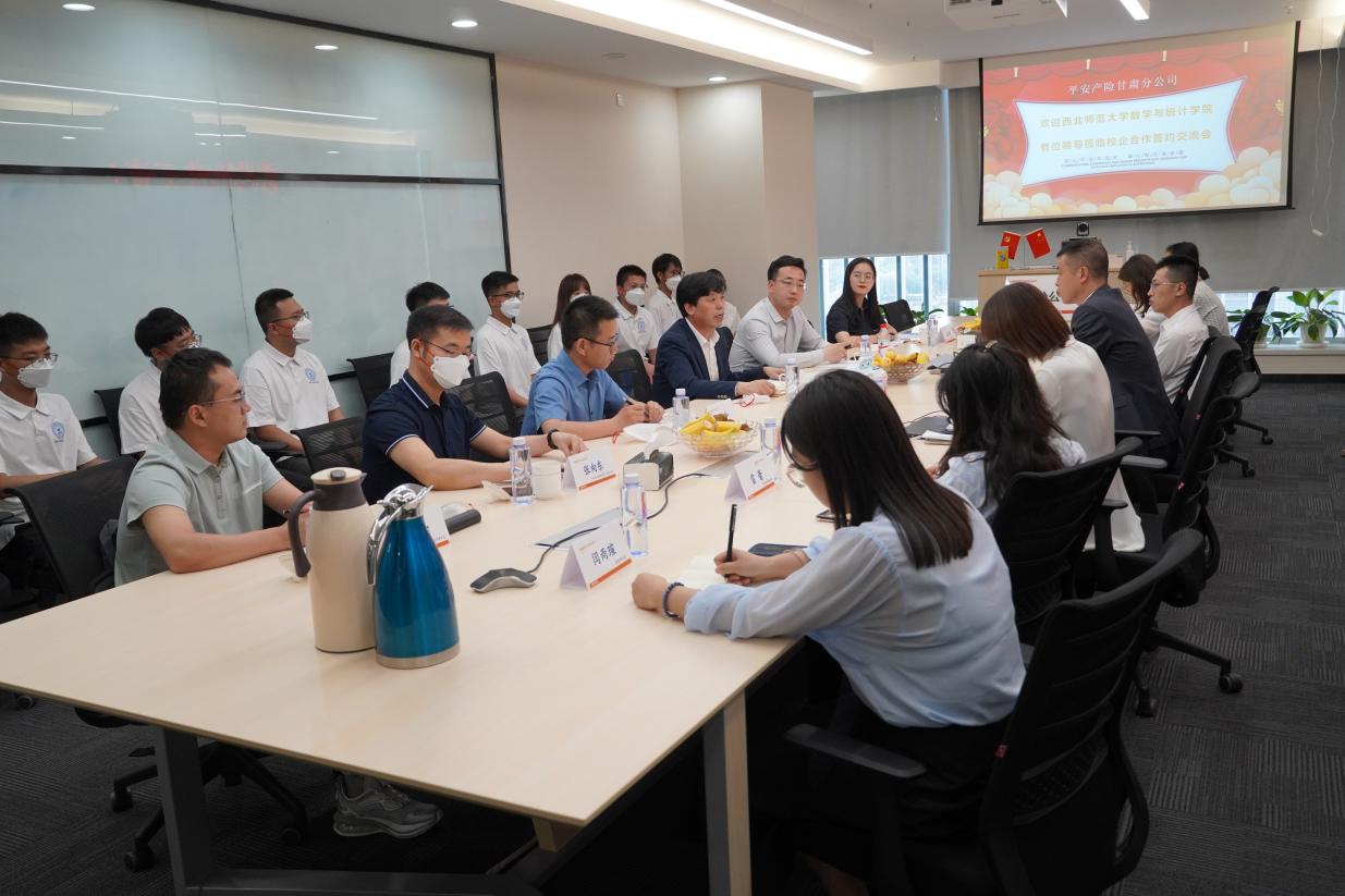 会上,双方签署了《实习实践和就业基地共建协议书》,并从促进就业、协同育人、深入合作等方面展开交流。王思宇详细介绍了平安产险甘肃分公司的企业文化、发展历程、发展理念、校企合作、管培生培养规划以及对数学专业人才的需求等方面的情况。杨和、孙晋易分别介绍了学院本科和研究生专业设置及人才培养情况。各部室经理详细解答了学生代表的提问。