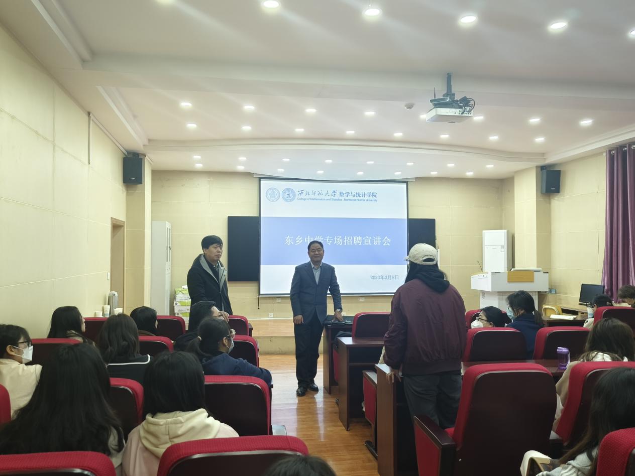 为进一步推进我院2023届毕业生就业高质量工作,学院于3月8日在9C101学术报告厅举办了临夏州东乡中学专场招聘宣讲会。