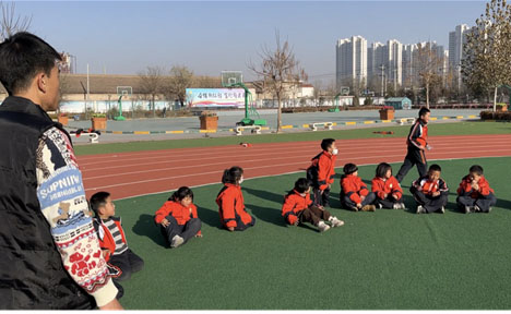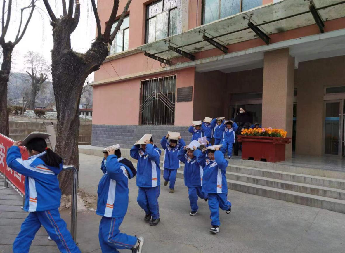 (图9.临夏市红园小学实习教师协助开展防震演练)