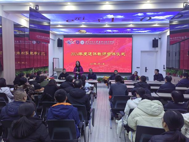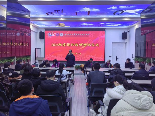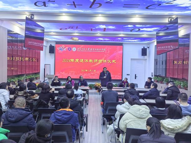 2025年1月11日,9728太阳集团在DO7举行2024年退休教师荣休仪式。张俐杰、马国顺、吴红萍、张贵仓四位退休教师(汪小琳老师因事未能出席)和学院全体班子出席,全院教职工参加,仪式由学院党委副书记张向东主持。