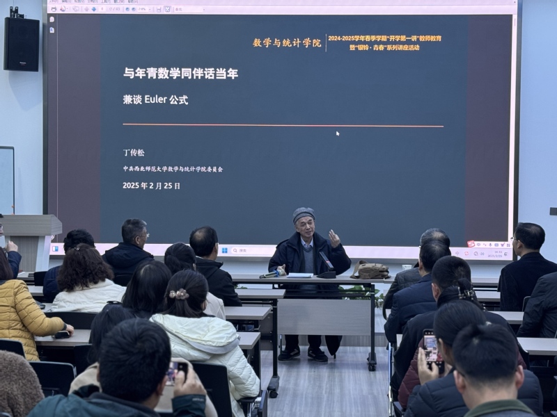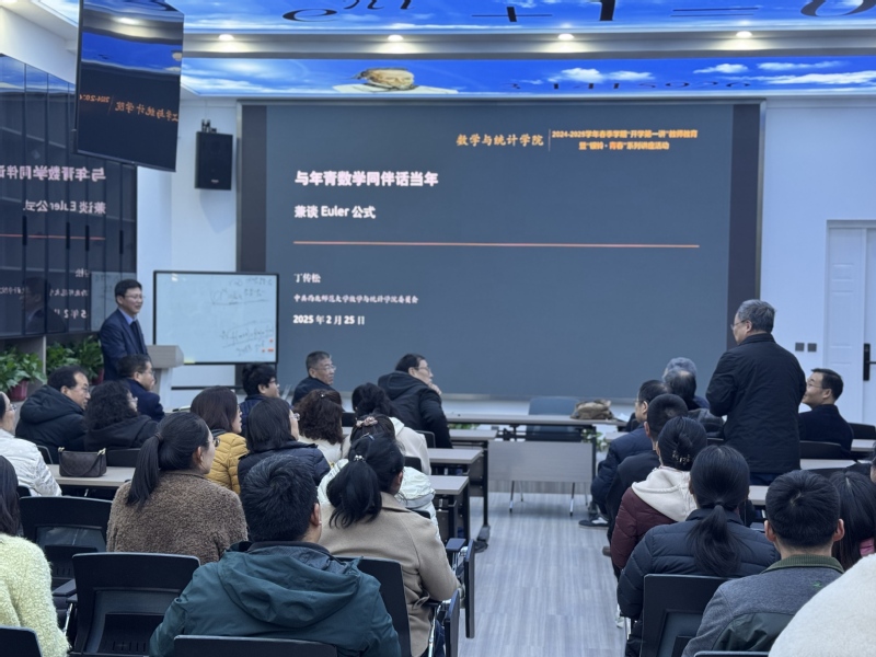 2025225日,学院在致勤楼D07报告厅举办2024-2025学年春季学期“开学第一讲”教师教育暨“银龄∙青春”系列讲座活动,特邀退休教师丁传松教授作了题为“与年轻数学同伴话当年——兼谈Euler公式”的专题讲座活动由学院党委书记孙小春主持。