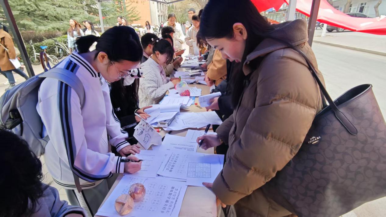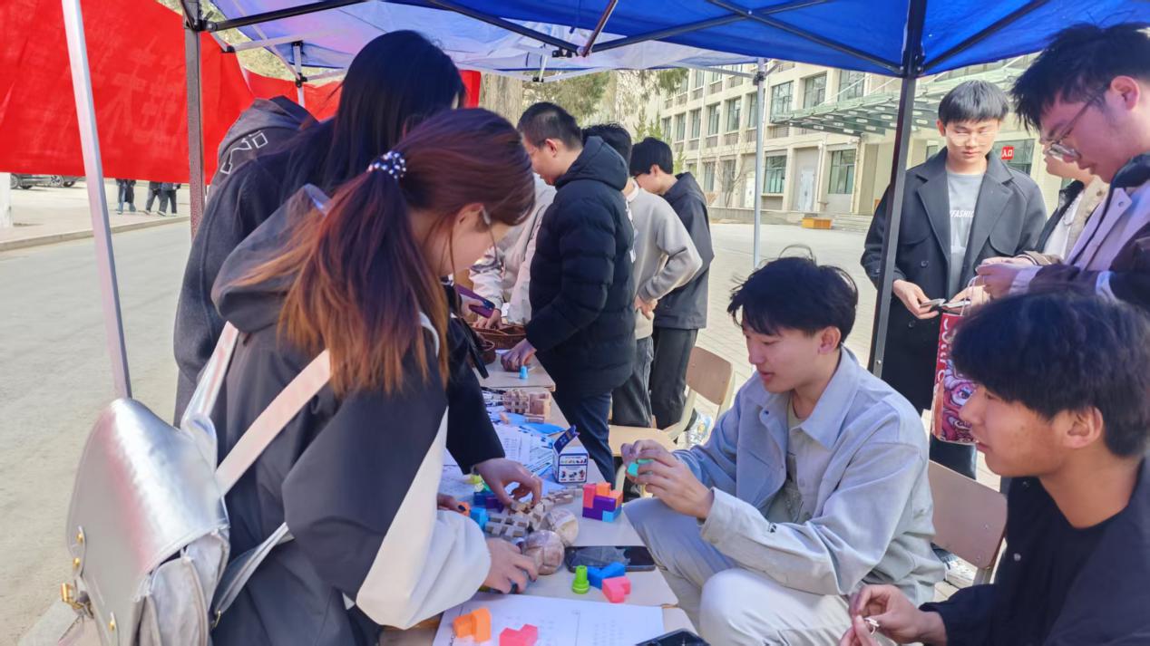 3月14日,学院坚持寓教于乐的方针,举办数学文化节系列活动,将来自不同院系的数学爱好者汇聚在一起,为共同的数学追求迸+发出智慧的火花。设置鲁班锁、索玛立方体、密码转盘、缤纷地图、扑克算数王、数独挑战、一笔画大闯关等游戏以及数学文化科普长廊,引导师生在游戏中了解数学、欣赏数学,体味数学与艺术的浪漫,为师生提供了一个多途径、多角度亲近数学的舞台,激发学习数学的兴趣,提升数学素养。