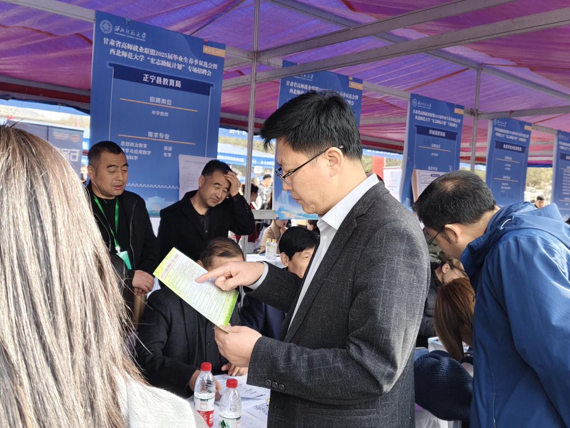 同日,酒泉市瓜州县教育局局长杨继翟重点推介当地教育生态及“编制保障+住房补贴+配偶随迁”等政策,吸引优秀毕业生投身基层教育事业。互动环节中,毕业生就岗位分配、职称评定等问题与教育局负责人深入交流。
