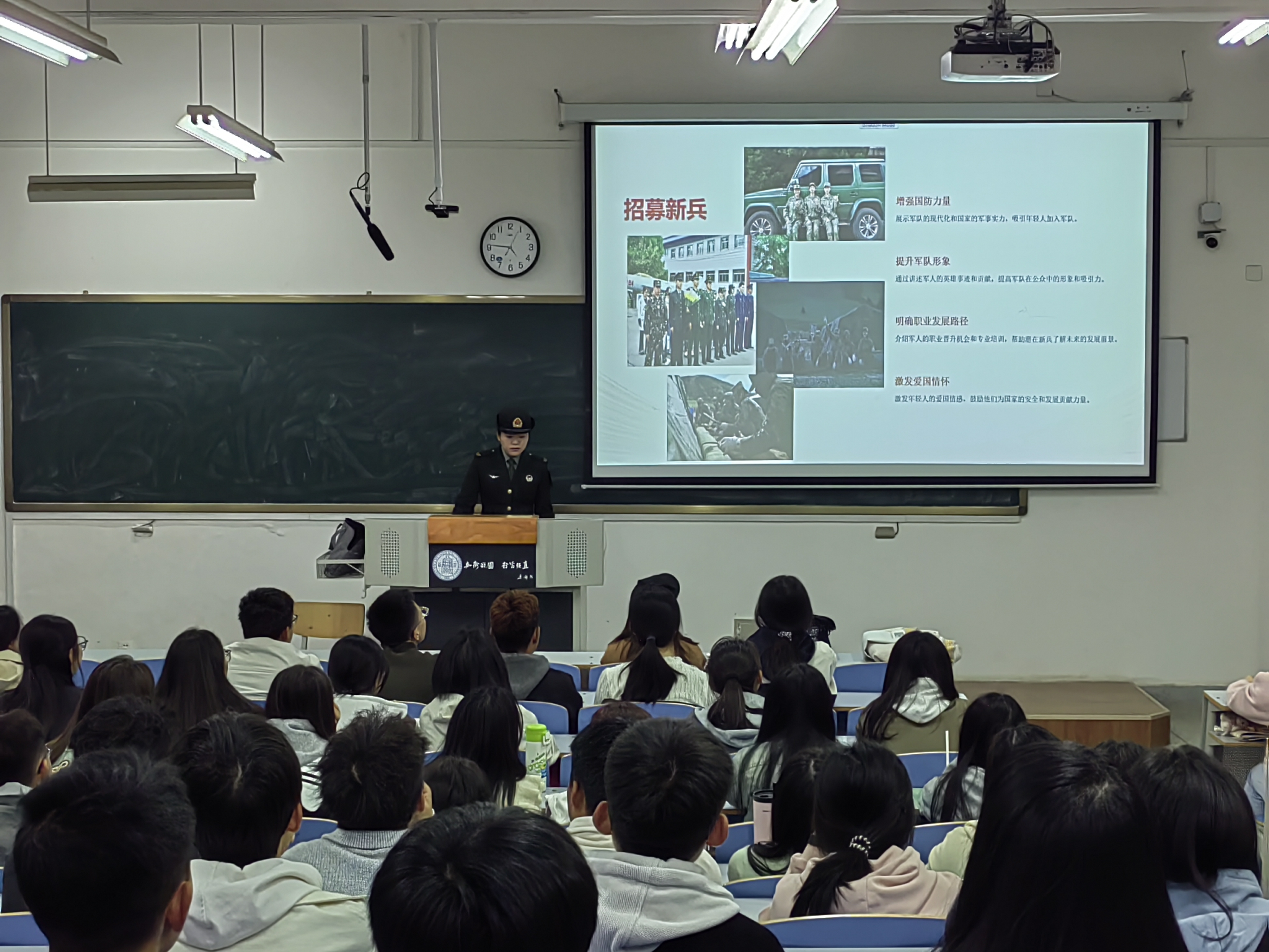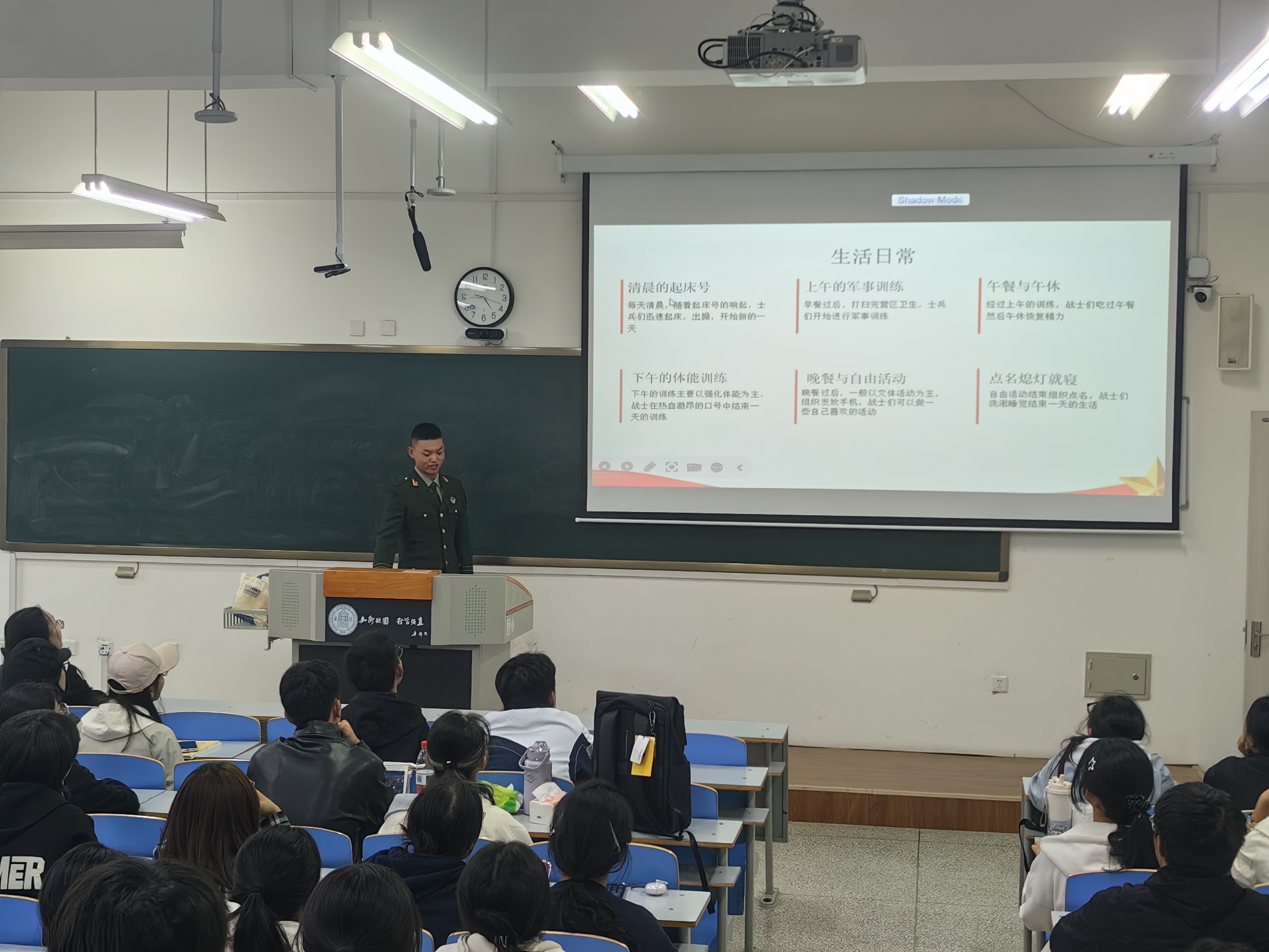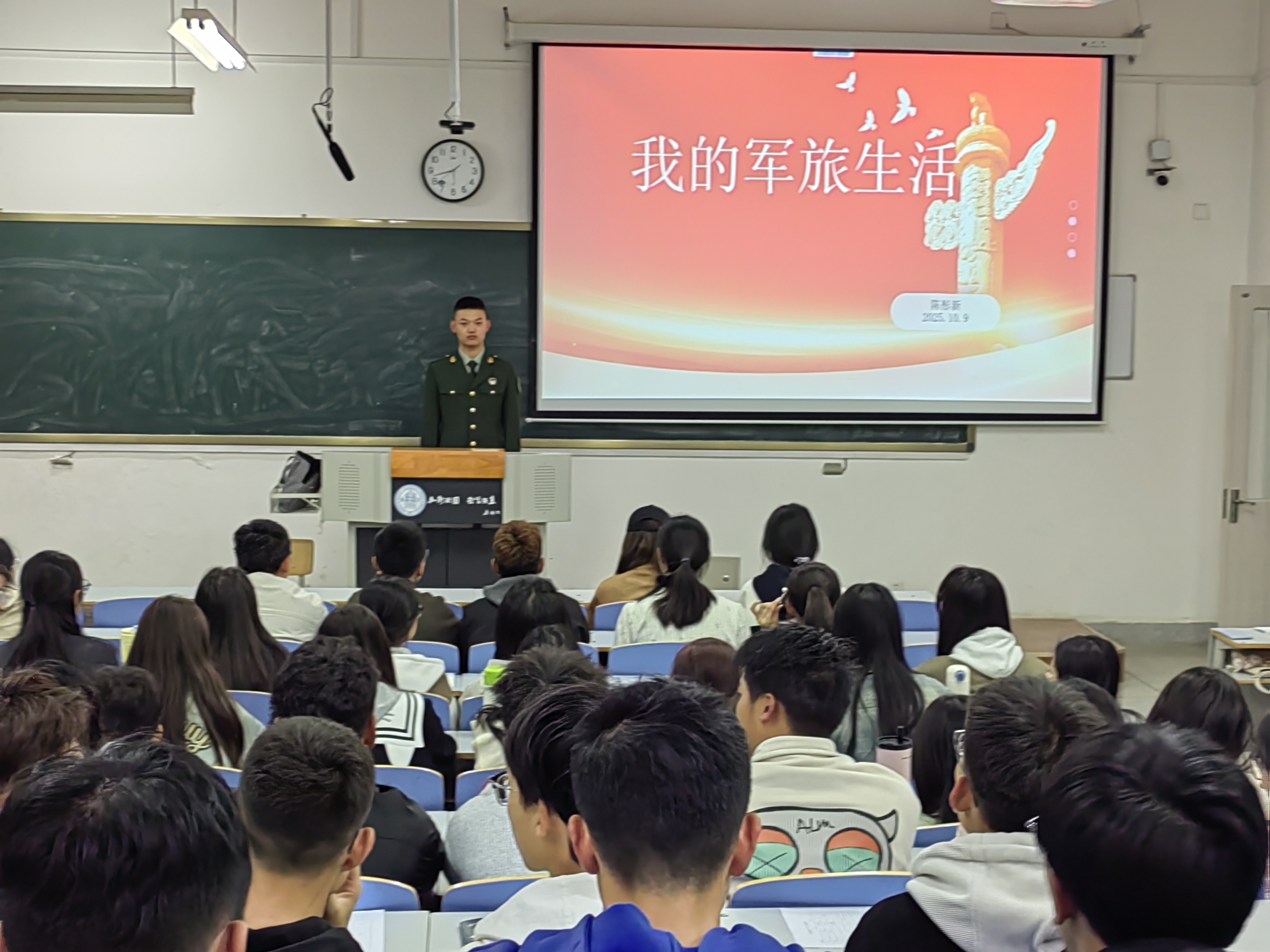 为弘扬退役军人“退伍不褪色”的优良作风,发挥大学生身边的榜样引领作用,激励在校学子砥砺奋进,学院于10月9日下午在知行校区学术报告二厅、103和302多媒体教室举办“青春献军旅 奋斗续华章”优秀退伍学生交流分享会。学院党委副书记张向东、辅导员周宇、包佳佳及2025级全体本科生参加,共同聆听退伍学子的军旅故事与成长感悟。