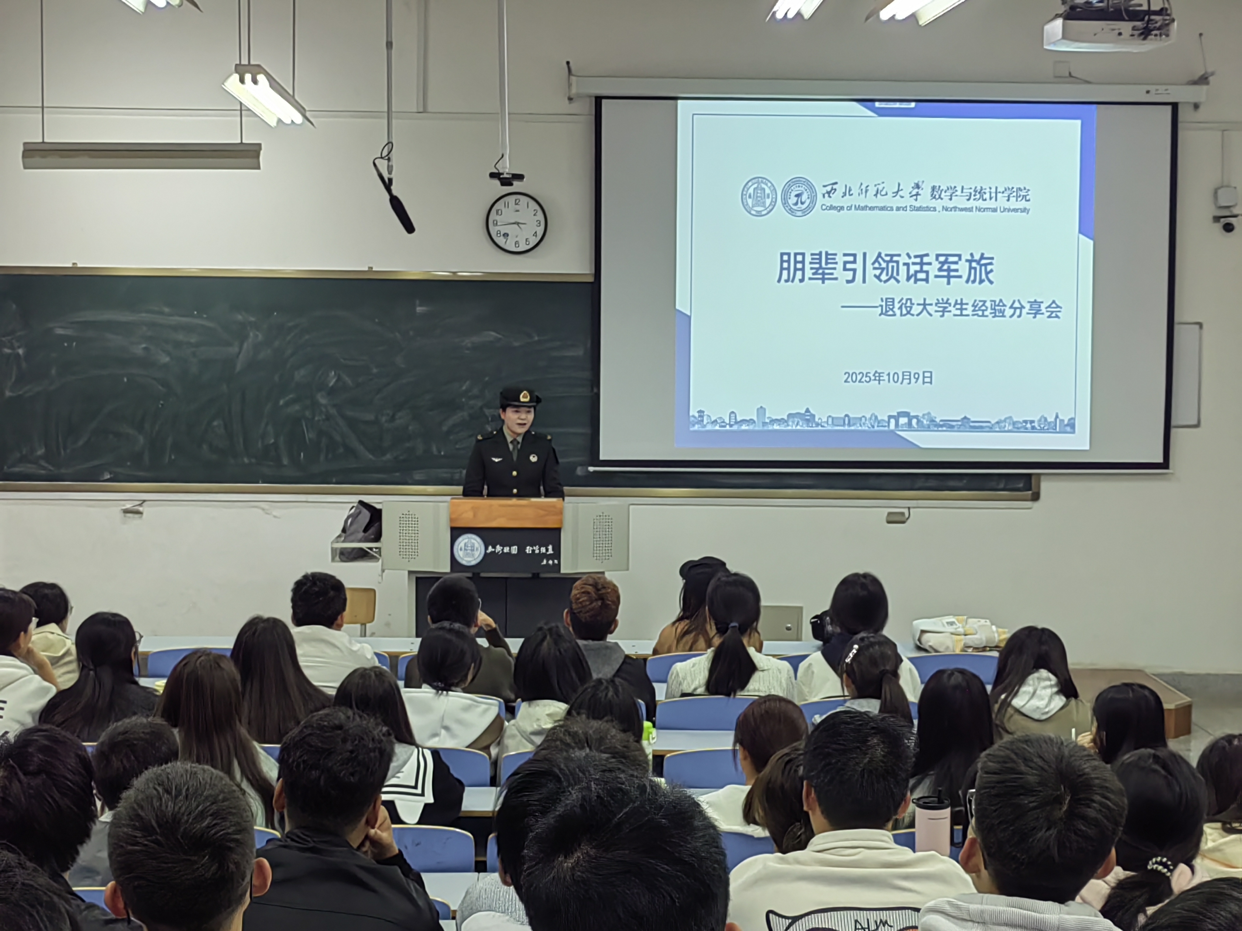 分享会上,2023级应数4班古丽阿依姆·如则、2024级应数1班冯超、2024级应数2班马亚蓉、2025级应数2班陈彤新等4名优秀退伍学生代表结合亲身经历,生动展现了从军营回到校园的蜕变历程。会上,4位优秀退伍大学生从为什么要参军、军营的日常生活、个人的体验、成长和收获、入伍应具备的条件等方面进行了分享。
