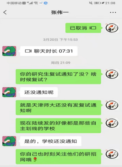 “时空里不能和学生见面交流,那就在‘云端’见面和交流吧。”2018级数学与应用数学3班班主任李晓燕老师与学生们温暖相守,“我真觉得学生就像自己的孩子,封闭管理期间见不到还想呢,所以和在校的每个宿舍每位同学都进行了视频交流,当看到他们脸上的笑容时,我心里也是格外开心。”李老师对于有困惑和困难的学生,通过“云端”给予及时帮助,比如有位同学某天晚上给发信息说她出疹子了买不到药,李老师立即和辅导员联系,按着正常程序让学生顺利就医。
