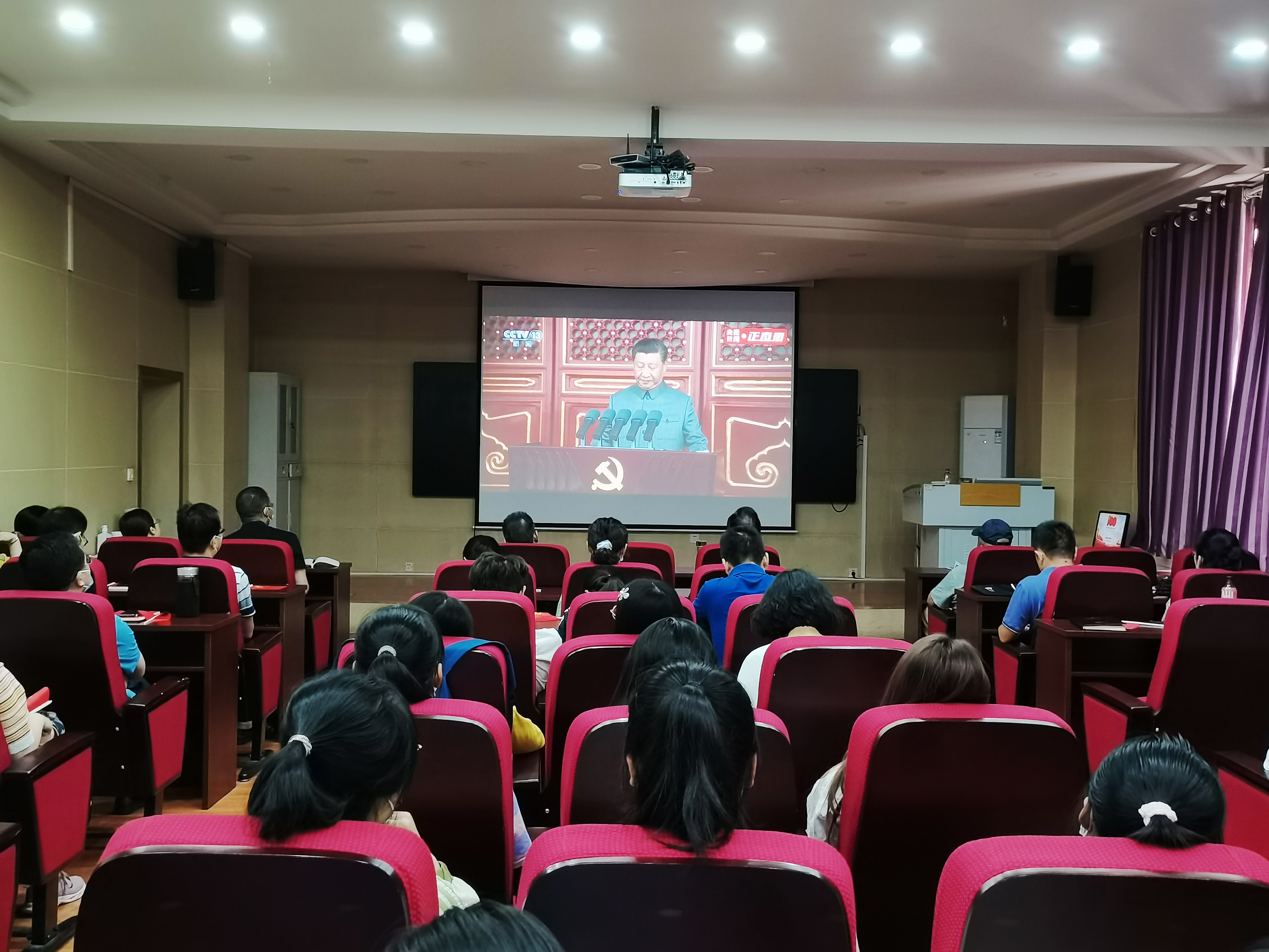 现场师生心潮澎湃,掌声阵阵。庆祝大会结束后,学院党委组织师生党员深入学习研讨了习近平总书记在庆祝中国共产党成立100周年大会上的重要讲话精神。